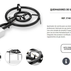 Queimador de cozinha para uso doméstico e/ou profissional. Fabricado em aço laminado a frio e coberto com uma camada de esmalte. É especialmente indicado para uso em áreas fechadas/locais. Com válvula termopar integrada. Este produto é certificado de acordo com os regulamentos de gás atuais.